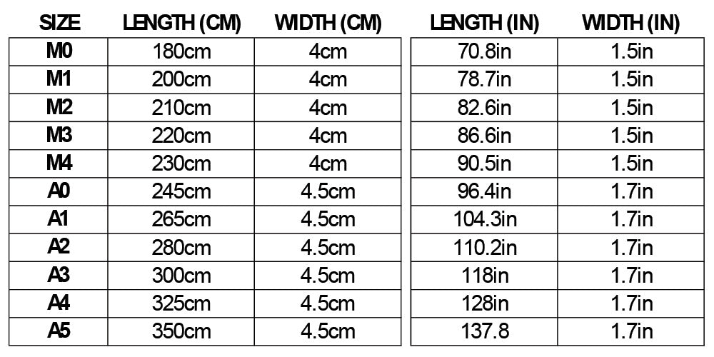 - A3 = 300cm (approx. 118 inches)