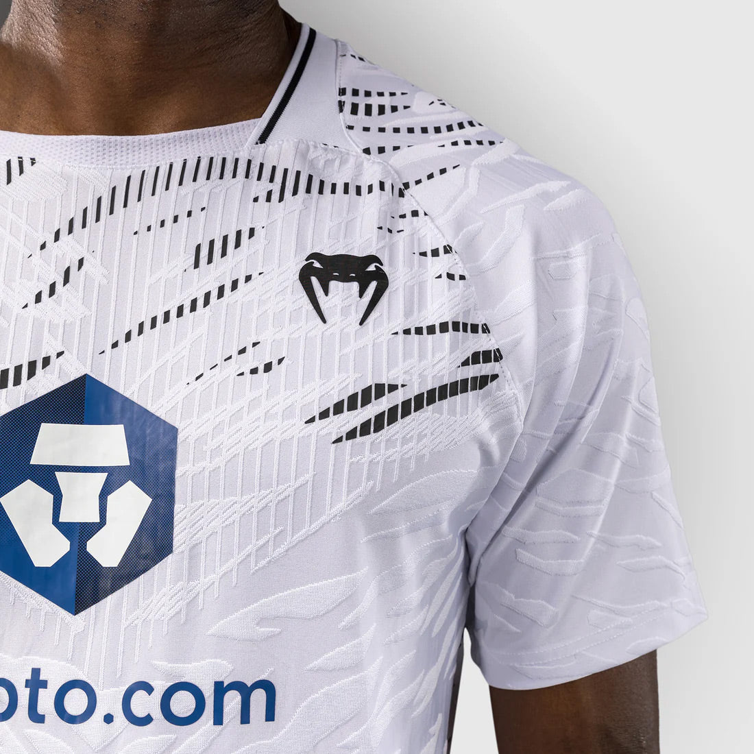 UFC Fusion by Venum Authentic Fight Night Men’s Walkout Jersey in White is a lightweight performance shirt with enough stretch to move with you. You’ll stay comfortable and cool with the shirt’s Dry-Tech fabric, even during the most intense training sessions.